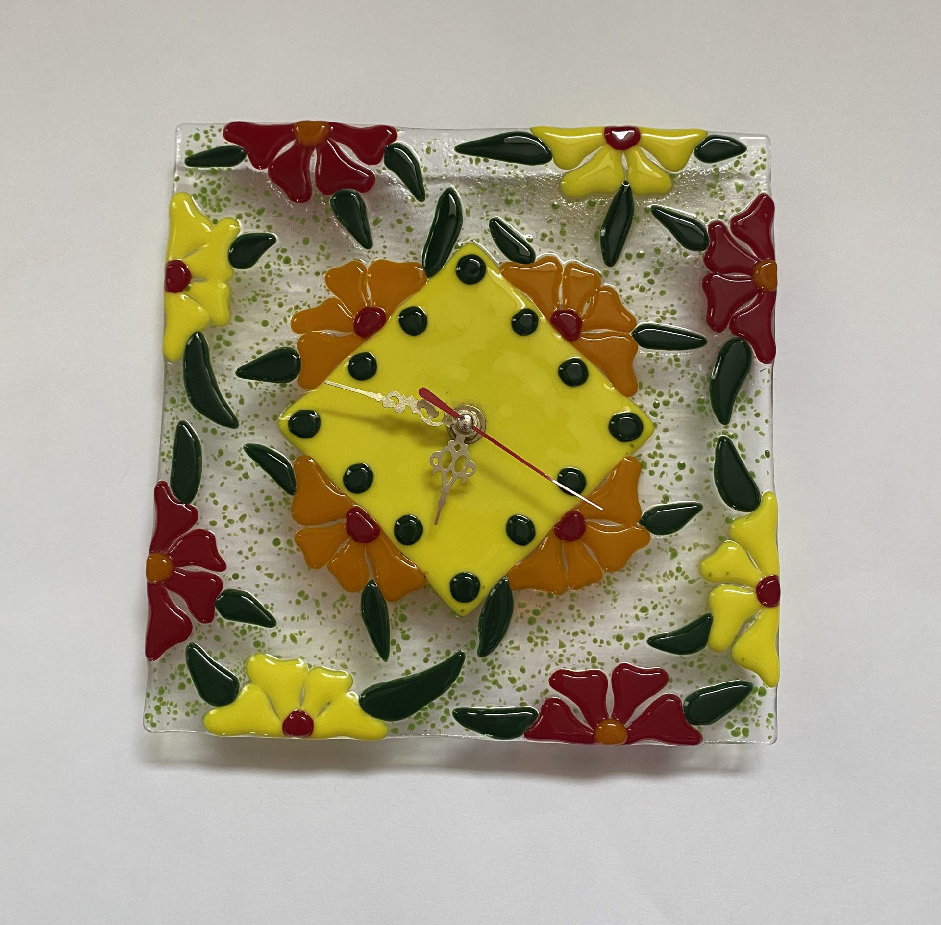 Унікальний годинник ручної роботи, виконаний в техніці Ф’юзинг. Ексклюзивний витвір мистецтва створений нашими дизайнерами для декору вашої оселі.